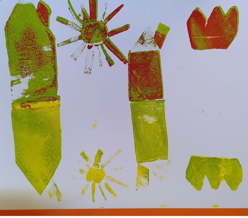 Opdracht: De kinderen hebben, nadat ze eerst een ontwerp hebben gemaakt, huizen geknipt van foam. Ze moeten het spiegelbeeld van de huizen ook knippen. Nadat ze het op een karton hebben geplakt kunnen ze het foamwerkstuk inrollen met drukprintverf. Die drukken ze af op een ander papier met behulp van een drukpers. Zowel het foamwerkstuk als de print is het eindresultaat.