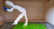Van metaaldraad, papier-maché en gips gaan we een sportfiguur maken die in beweging is. Hieronder ze je dat we het metalen draadpoppetje meer 'body' gegeven door het met papier-maché te beplakken.